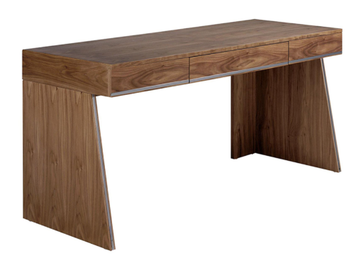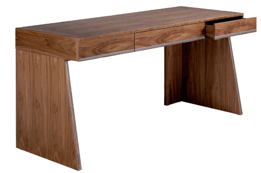 Escritorio de diseño moderno fabricado en madera chapada en nogal natural. 160 x 61 x 76 cm.