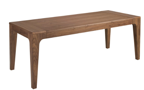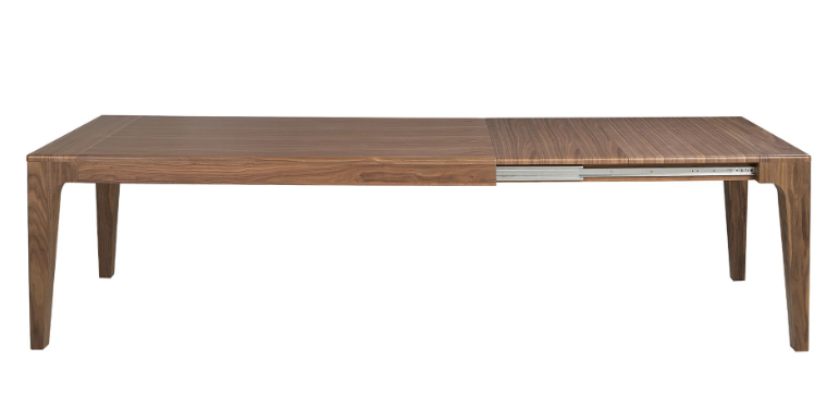 Mesa comedor extensible rectangular de diseño moderno con tapa y estructura de madera chapada en nogal natural. Su estilo elegante, así como su adaptabilidad, la convierten en un mueble totalmente funcional y versátil para el día a día.