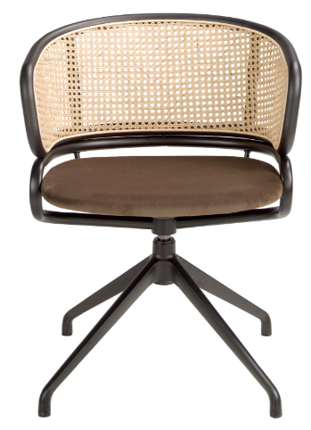 Silla giratoria rattan y terciopelo marrón
