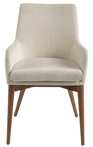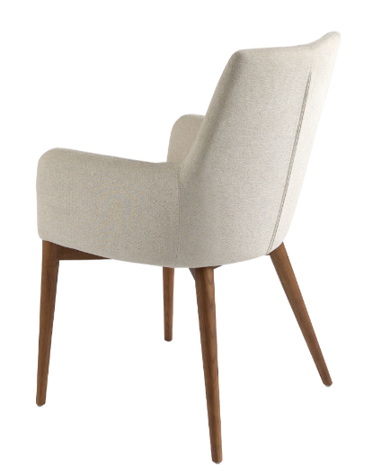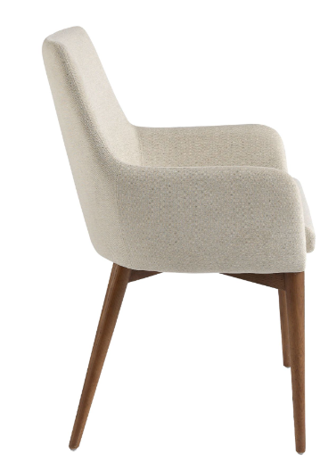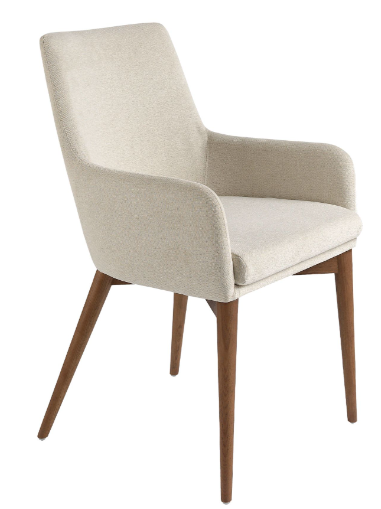 Silla con reposabrazos de diseño moderno con asiento y respaldo tapizados en tela color beige.  57 x 64 x 88 cm.