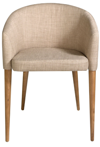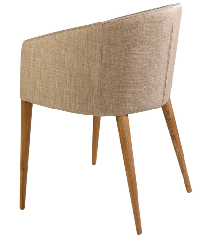 Silla con reposabrazos de diseño moderno con asiento y respaldo tapizados en tela color beige. Sus patas de madera en color nogal de estilo vanguardista a la vez que atemporal, la convertirán en el must have de su cocina o comedor. 59 x 56 x 78 cm.